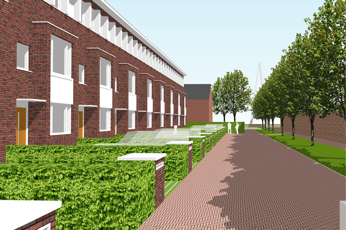 In Utrecht nabij de populaire wijk 'Oog in Al' is aan de Gerard Meijsterlaan gewerkt aan het ontwerp voor 15 stadswoningen. De rijwoningen vormen een wand die fietsroute over het Amsterdam Rijnkanaal begeleid. De schaal daarvan is afgestemd op de aanrijroute naar de nieuwe brug. Door het verdwijnen van de basisschool op die plek hebben we het stedenbouwkundige blok kunnen afmaken en versterken. Bestaande stijlkenmerken zijn opgepakt en vertaald op een eigentijdse moderne manier.